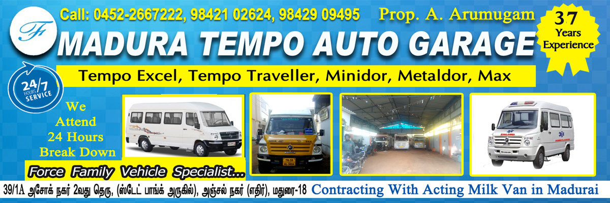 Our company name is Madura Tempo Auto Grade. Our company is located in Madurai. Our company Madura Auto Garage provide all type of Force family vehicle Mechanical services. Some of our services are Tempo traveler service in Madurai, Force tempo service in Madurai, Tempo traveler mechanic works in Madurai. Our workers are well experienced workers. Our vehicle services are Cruiser vehicle service in Madurai, Force tray cruiser school van service center in Madurai, Tempo traveler service center in Madurai, Force Ambulance service center in Madurai. All type family vehicle services are available. Rented Milk van service are also available with CIP systemCIP COTTON FOR MILK VAN, CIP COTTON FOR MILK CONTAINER AC SAVER in dairy plants industries are an efficient way to thoroughly clean and sanitize the interior of processing machinery and other equipment, Refrigeration is essential to dairy processing plants, as is keeping them clean and sanitary.To ensure these large systems get thoroughly cleaned, a CIP system can help ensure that they are clean and sanitary. creating a safer production space.. Force trax Gama service center in Madurai, Force Gurkha service center in Madurai, Force & 407 service center in Madurai, Force family vehicles service in Madurai.